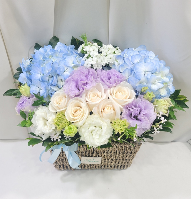 수국 장미 바구니