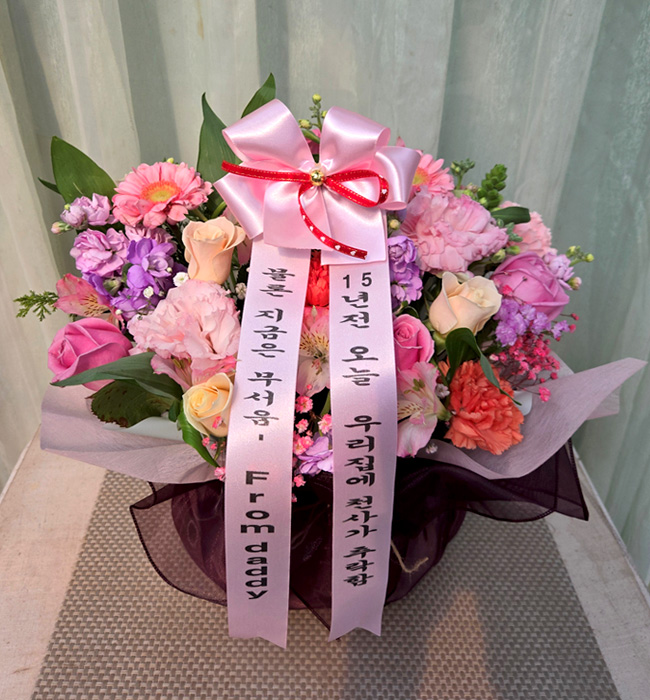 소중한 자녀분의 생일을 진심으로 축하드립니다! "15년 전 천사가 추락했다"는 위트 있고 사랑 가득한 메시지가 참 인상 깊네요. 따님께서 선물에 크게 만족하셨다니 저희도 정말 기쁩니다. 앞으로도 특별한 날, 예쁜 꽃으로 소중한 마음을 잘 전달하실 수 있도록 항상 정성을 다하겠습니다. 행복 가득한 하루 보내세요!