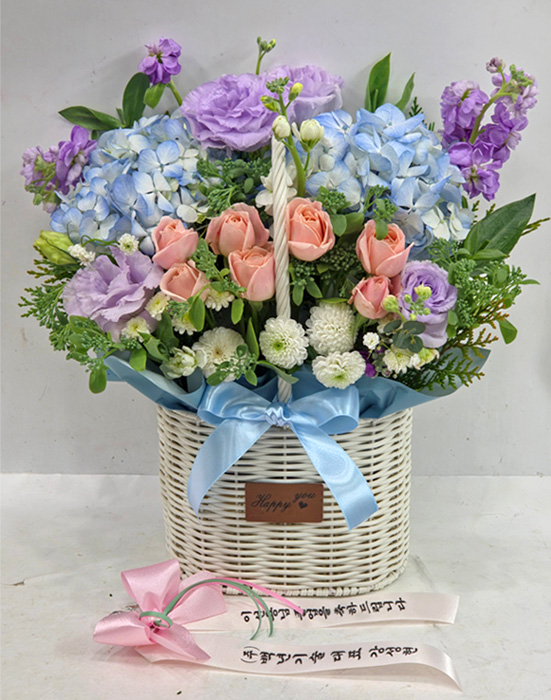 수국 장미 바구니