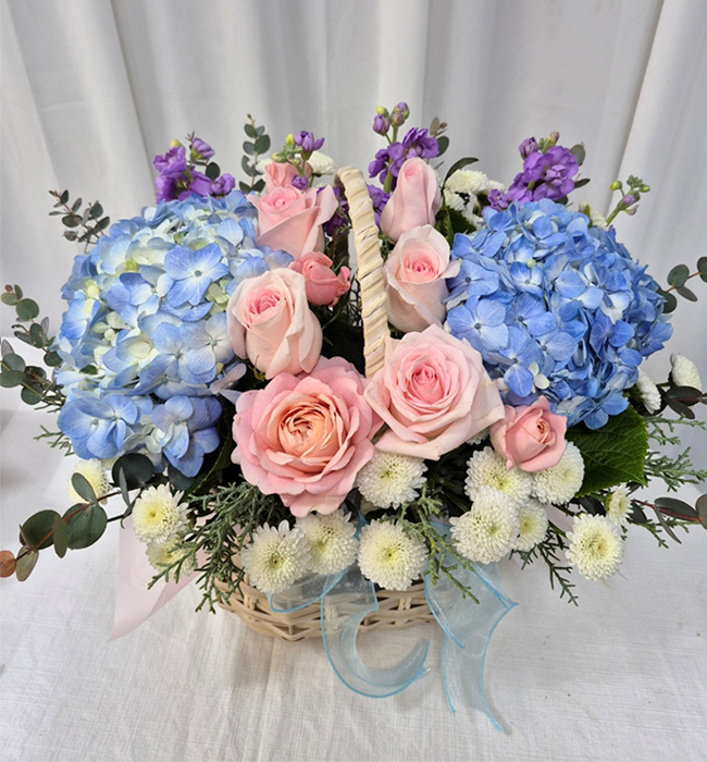 수국 장미 바구니