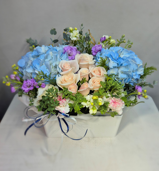 수국 장미 바구니