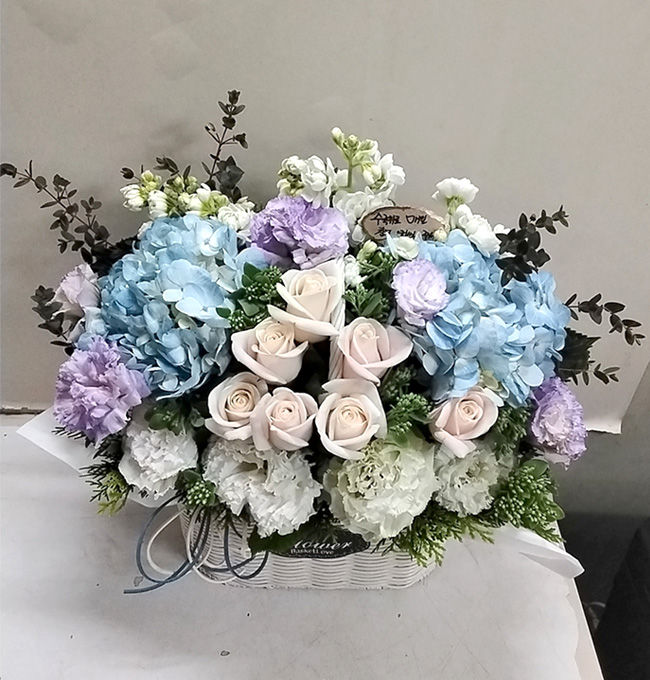 수국 장미 바구니