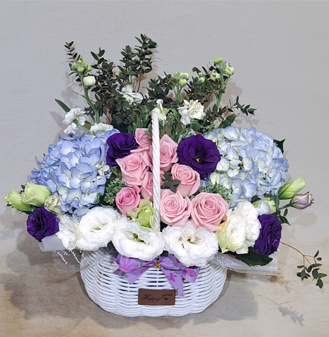 수국 장미 바구니