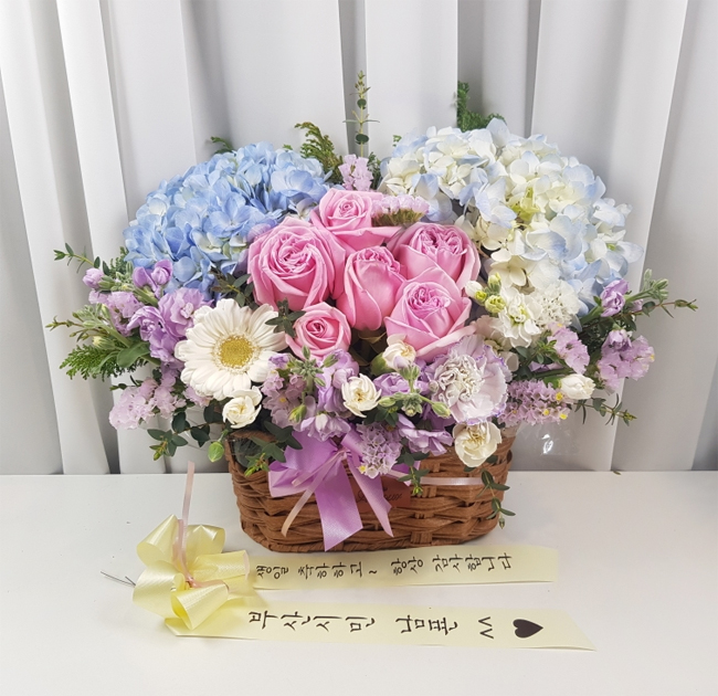 수국 장미 바구니
