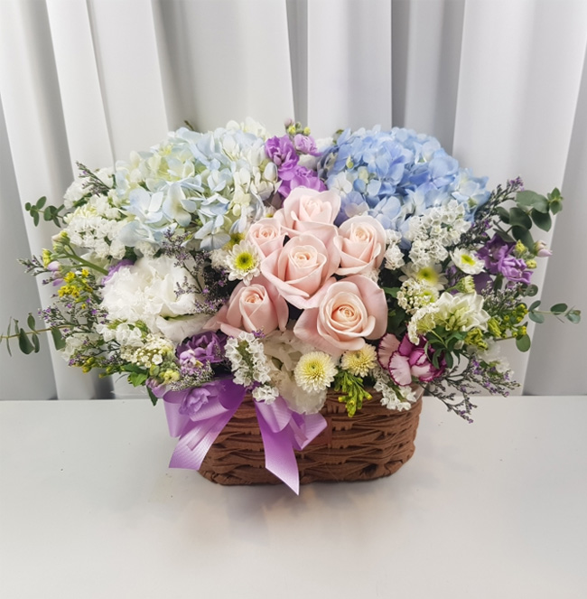 수국 장미 바구니