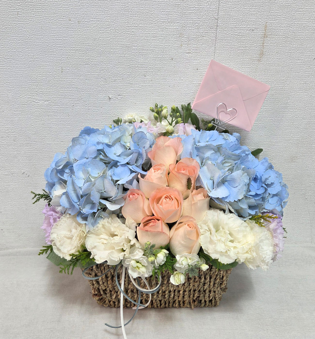수국 장미 바구니
