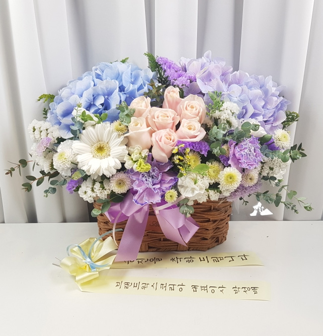 수국 장미 바구니