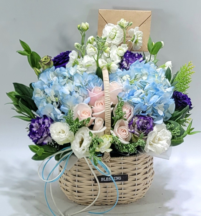 수국 장미 바구니