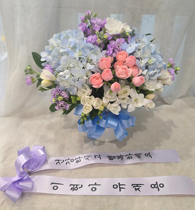 수국 장미 바구니