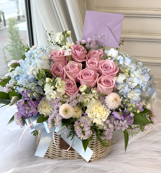 수국 장미 바구니