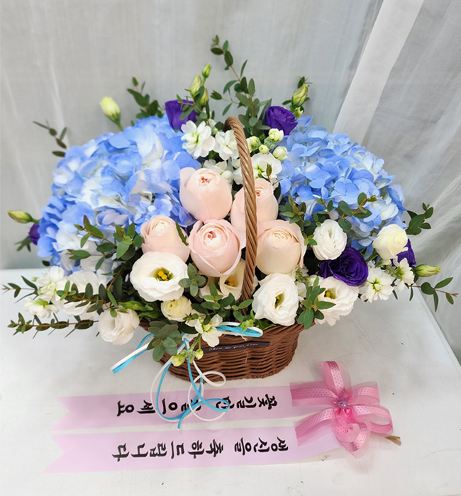 수국 장미 바구니