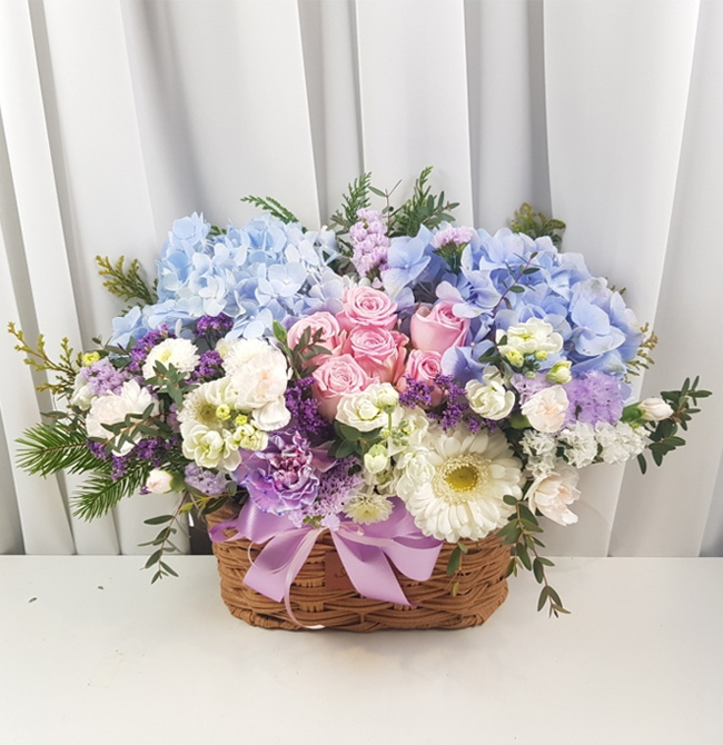 수국 장미 바구니