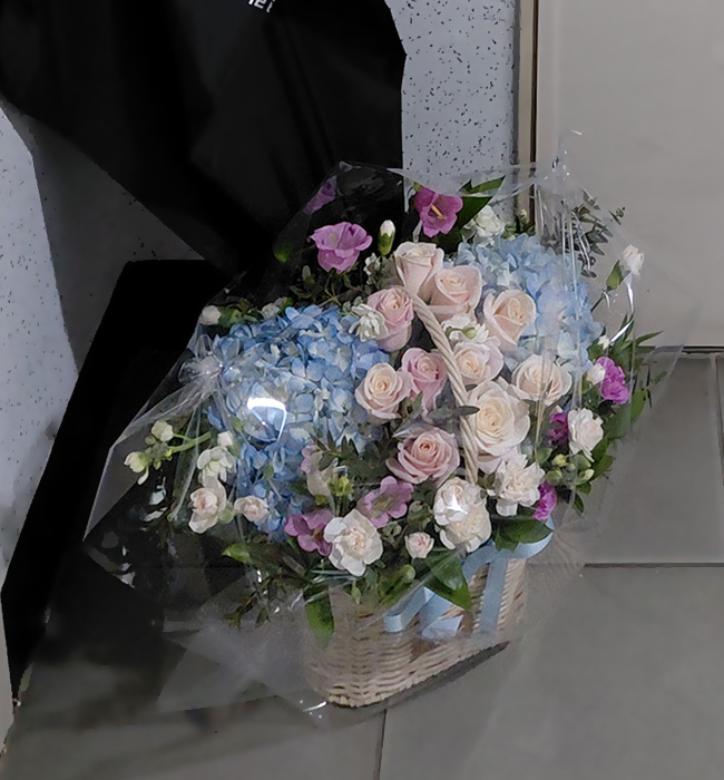 수국 장미 바구니