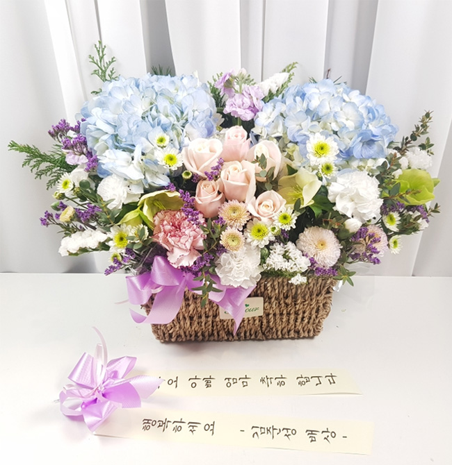 수국 장미 바구니