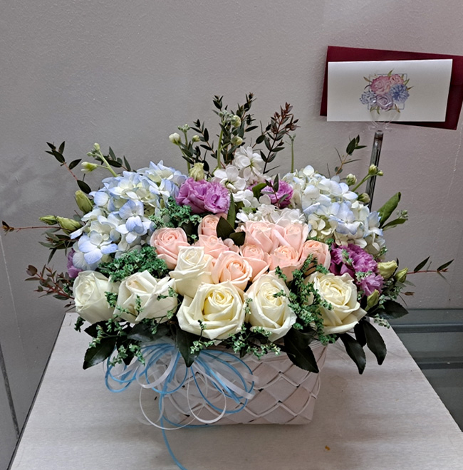 수국 장미 바구니