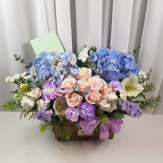 수국 장미 바구니