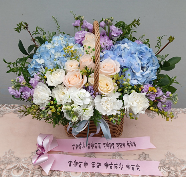 수국 장미 바구니