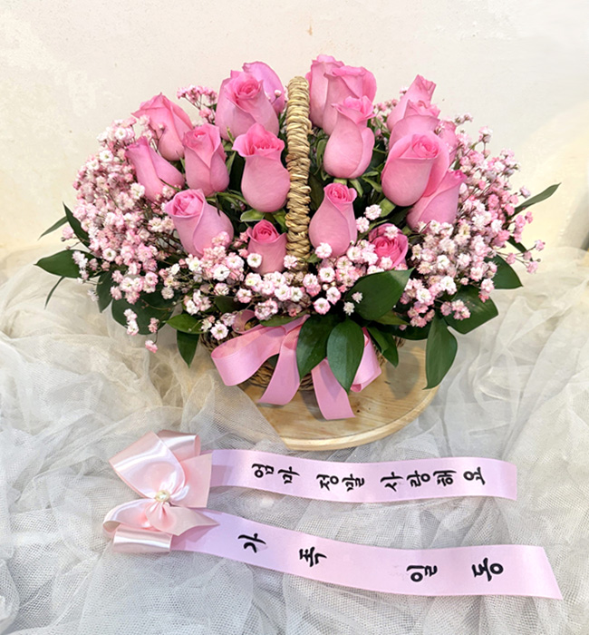 TV소개된 그 칼라안개와 핑크장미 꽃바구니