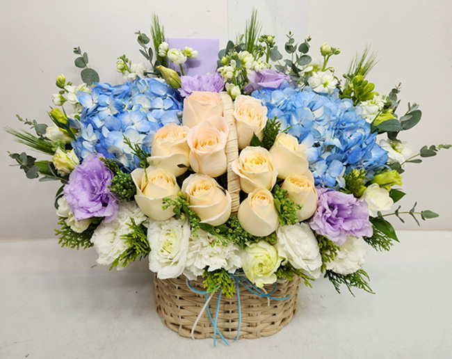 수국 장미 바구니
