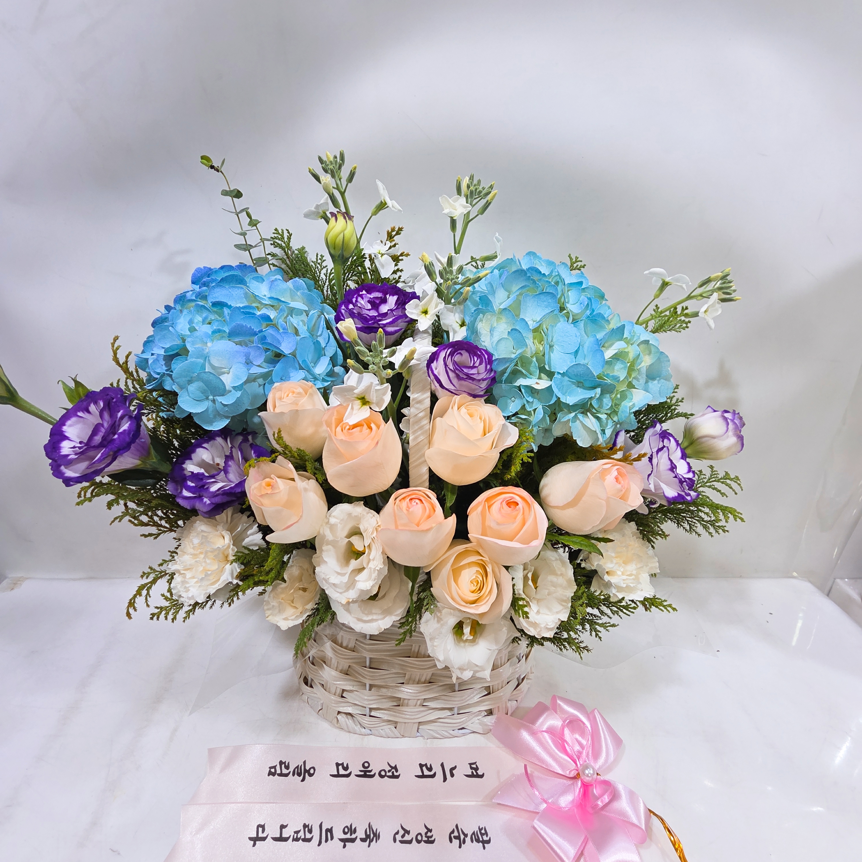 수국 장미 바구니