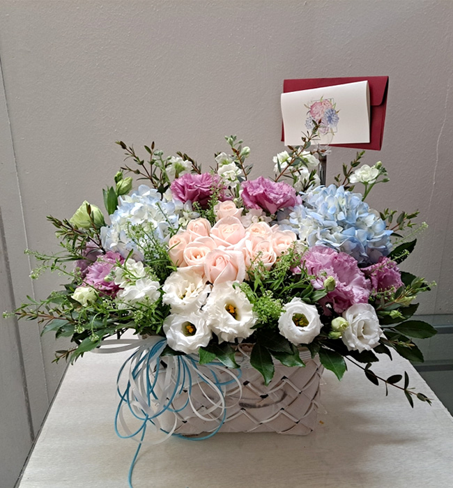 수국 장미 바구니