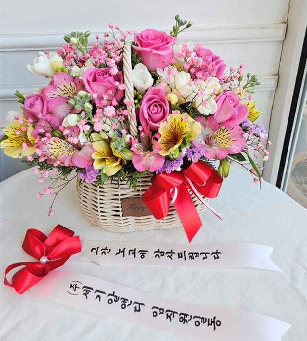 핑크장미 꽃바구니