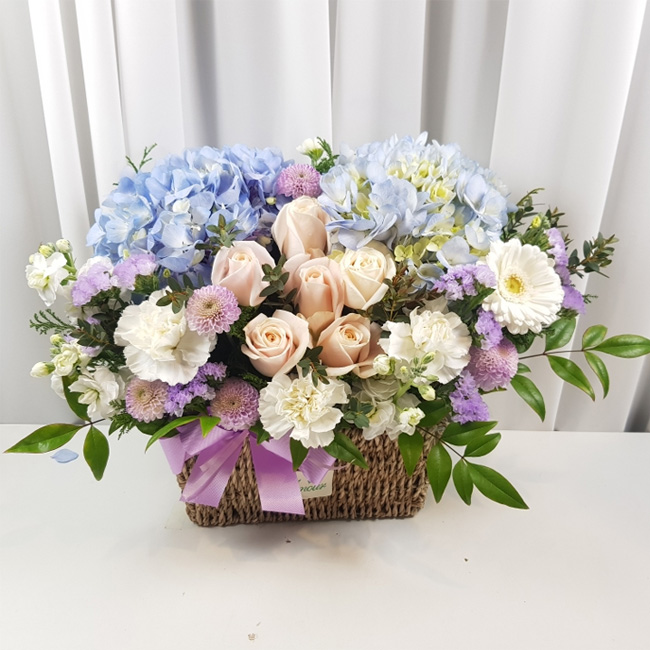 수국 장미 바구니