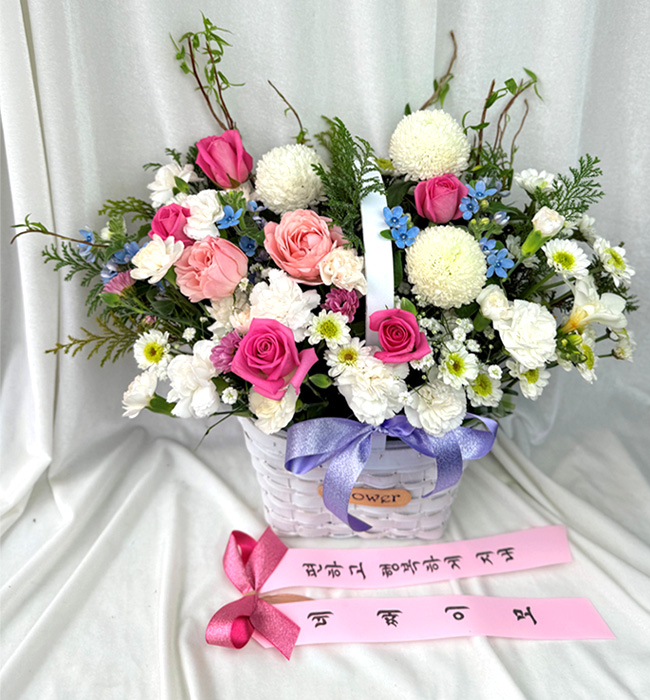 소중한 꽃바구니 선물에 만족하셨다니 정말 기쁩니다. "편하고 행복하게 지내"라는 따뜻한 리본 메시지처럼, 선물을 받으신 분께 고객님의 진심 어린 마음과 행복한 기운이 잘 전달되었기를 바랍니다. 앞으로도 정성을 다해 예쁜 꽃 전달해 드리겠습니다. 감사합니다. 행복한 하루 보내세요!