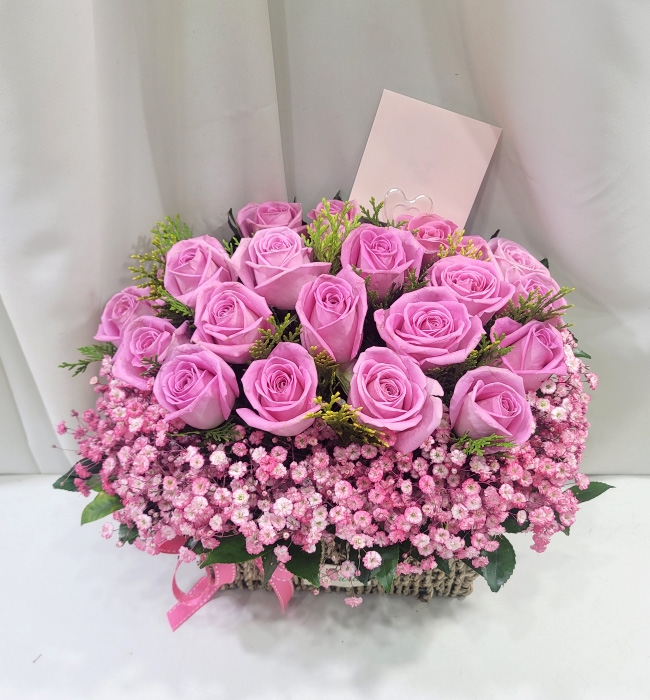 TV소개된 그 칼라안개와 핑크장미 꽃바구니