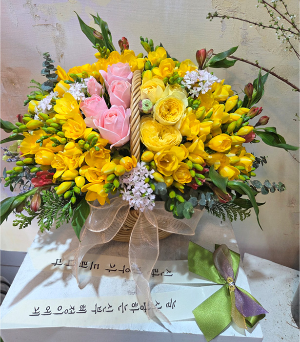 소중한 후기 감사드립니다. 정성껏 준비한 꽃바구니와 리본 메시지가 두 분의 소중한 순간을 더욱 빛내드린 것 같아 기쁩니다. 앞으로도 두 분의 앞날이 늘 꽃처럼 아름답고 행복하시길 진심으로 응원하겠습니다. 특별한 날을 믿고 맡겨주셔서 감사합니다. 즐거운 하루 보내세요!
