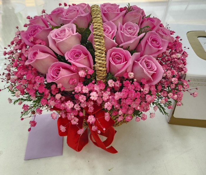 TV소개된 그 칼라안개와 핑크장미 꽃바구니