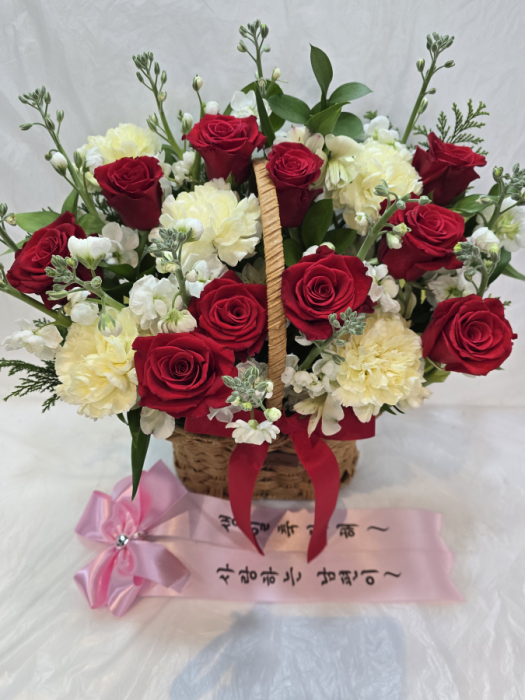 레드빛깔 꽃바구니+케익