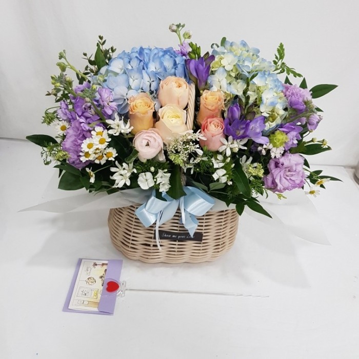 수국 장미 바구니