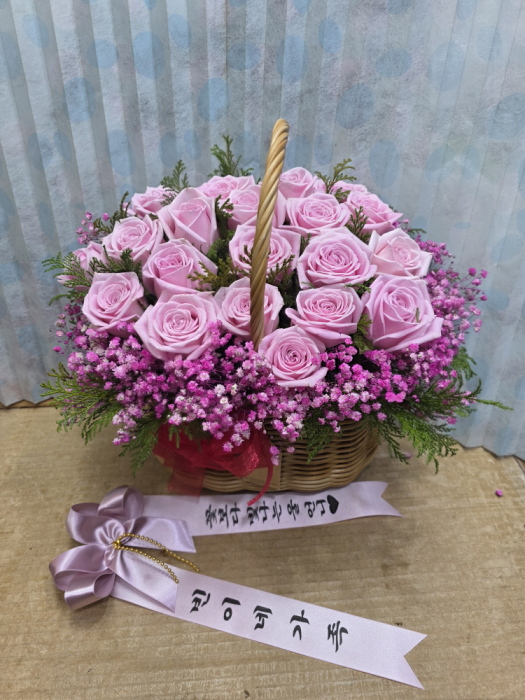 TV소개된 그 칼라안개와 핑크장미 꽃바구니