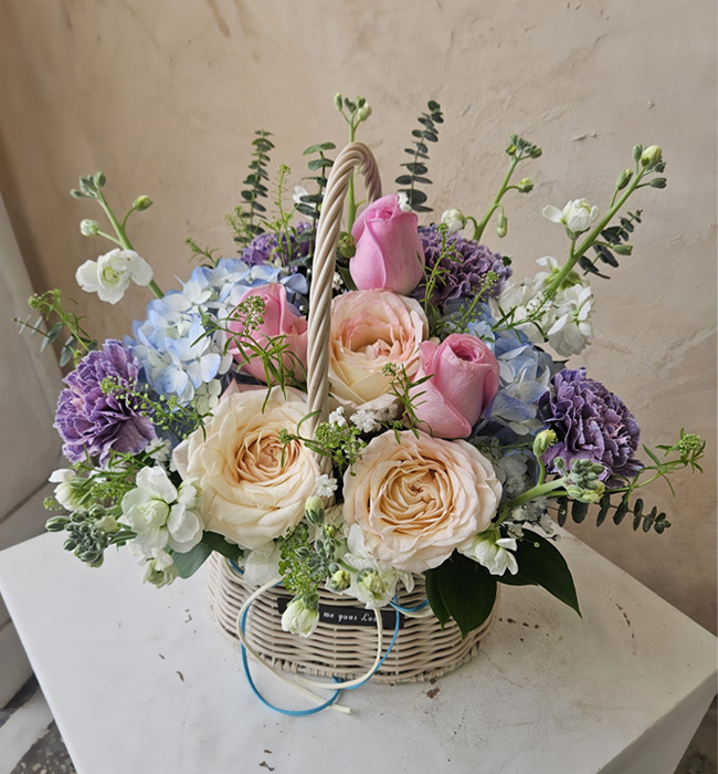 수국 장미 바구니