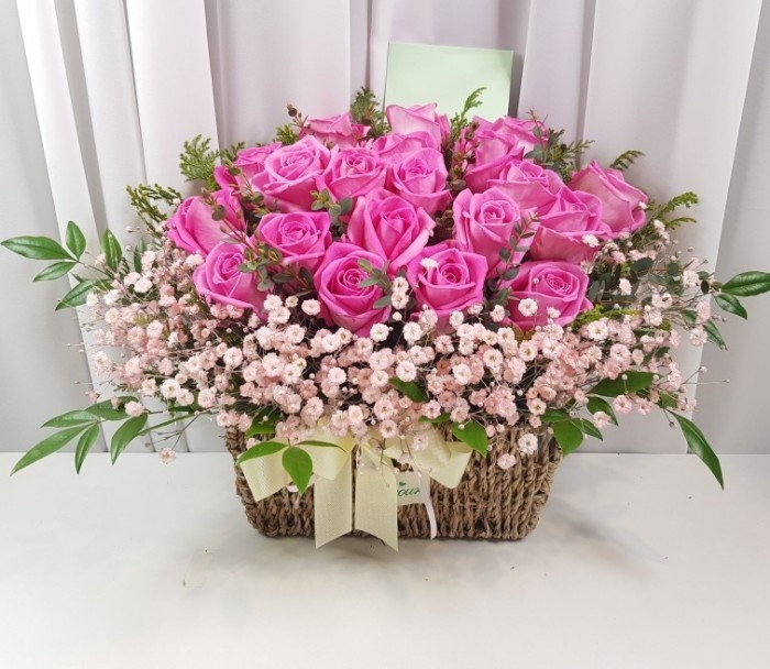 TV소개된 그 칼라안개와 핑크장미 꽃바구니