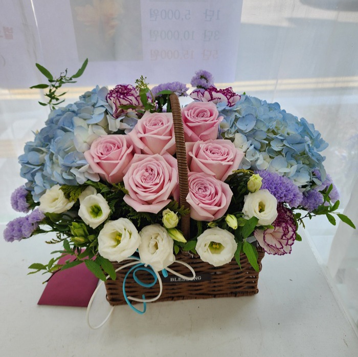 수국 장미 바구니