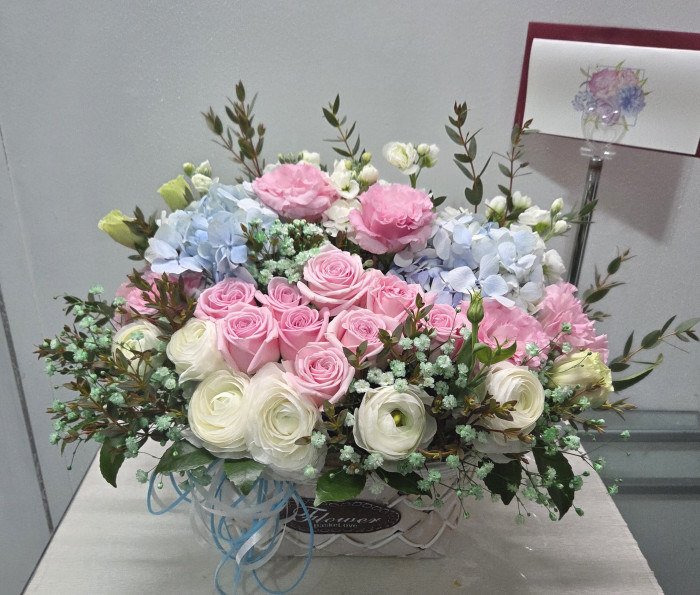 수국 장미 바구니