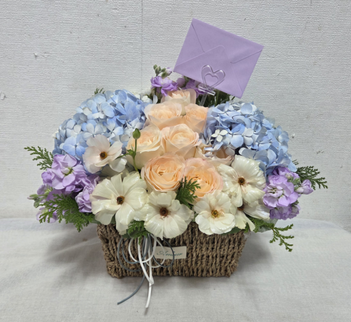 수국 장미 바구니