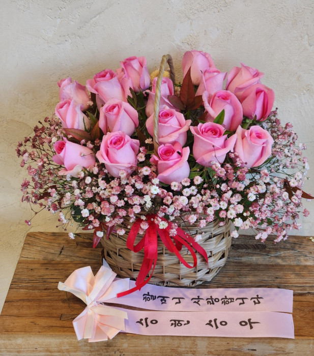 TV소개된 그 칼라안개와 핑크장미 꽃바구니