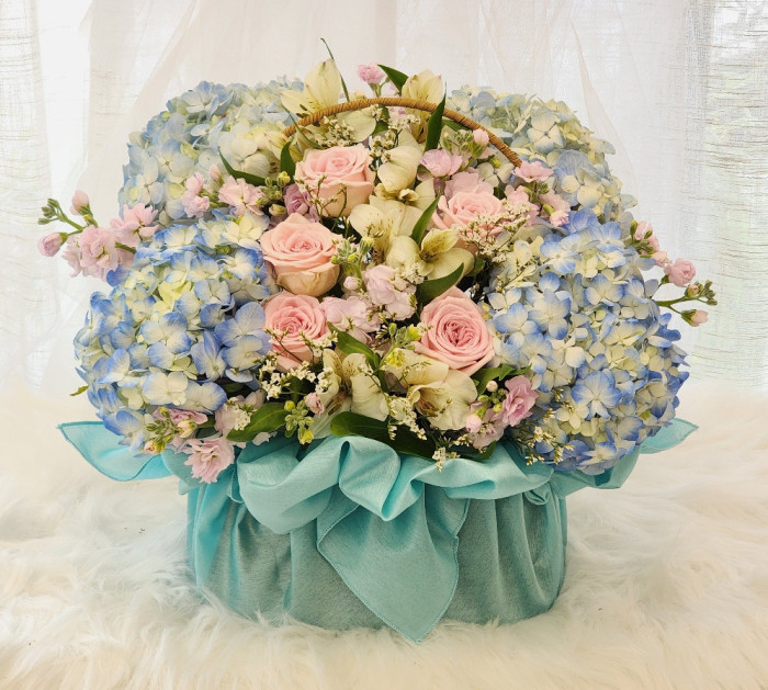 고급 포장 푸른 수국바구니