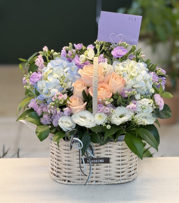 수국 장미 바구니
