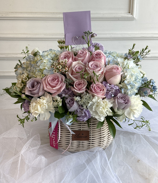 수국 장미 바구니