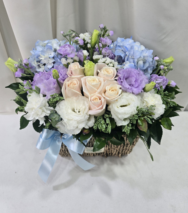 수국 장미 바구니
