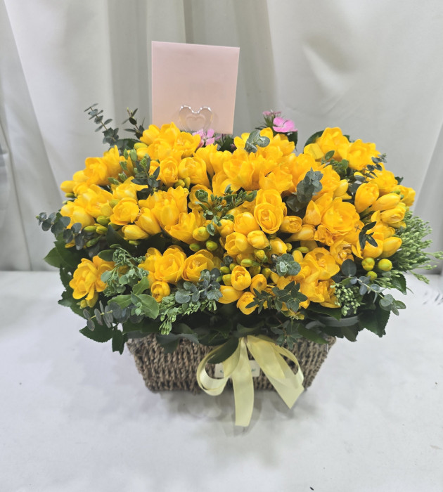 엄청 싱싱한 프리지아로 구성해주셔서 방이 프리지아 향으로 가득 찼어요. 꽃 송이도 많아 꽃 바구니가 풍부해보였습니다.