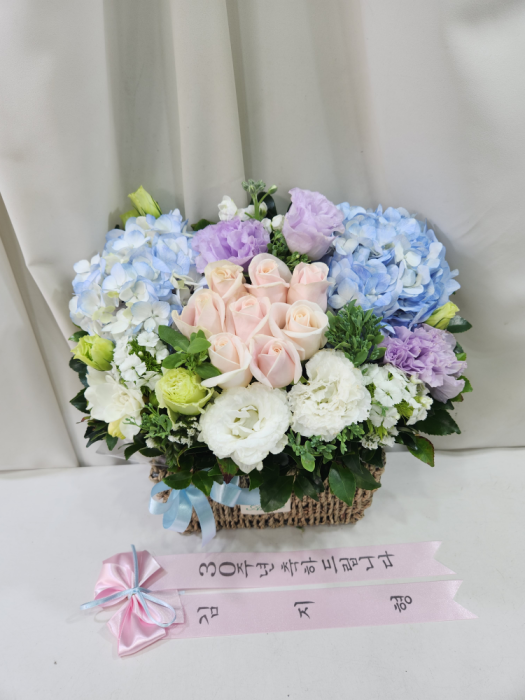 수국 장미 바구니