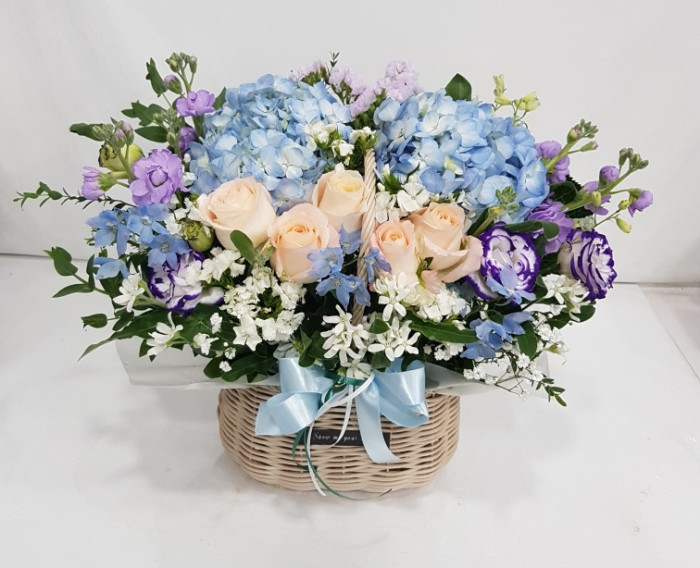 수국 장미 바구니