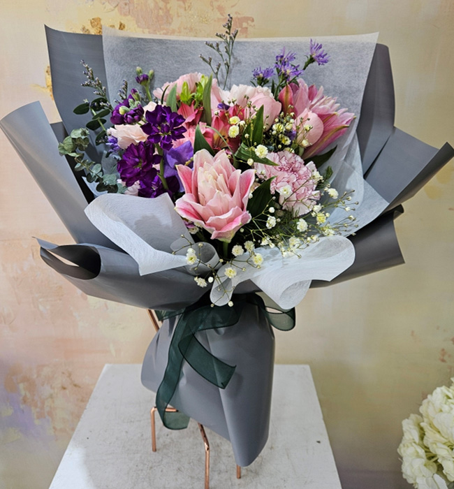 세련된 보라톤 꽃다발