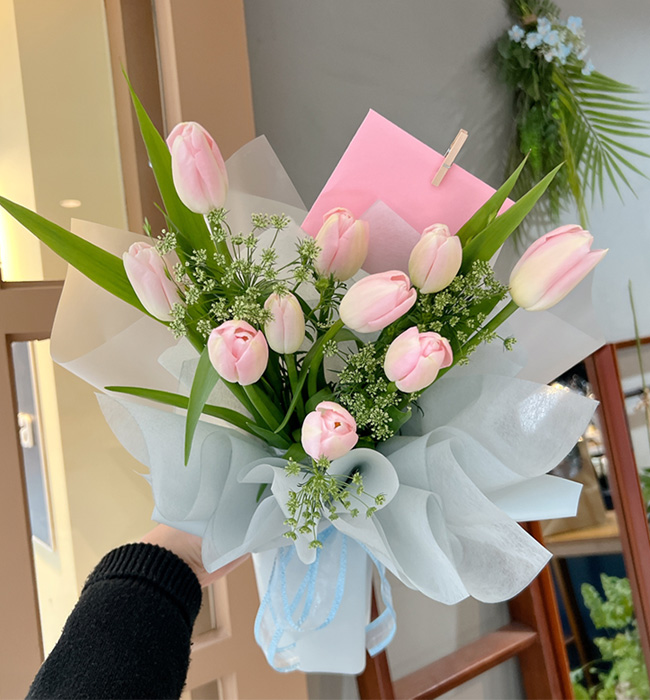 핑크 튤립 다발