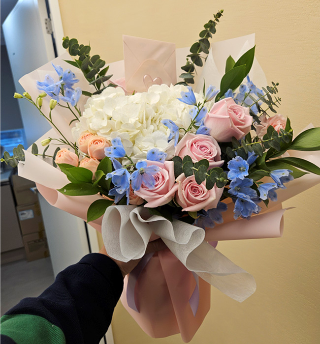 설렘가득 수국장미꽃다발